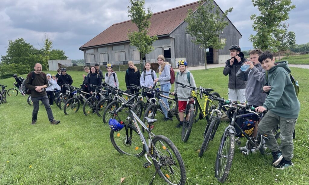Biologische Nutztierhaltung im Weinviertel – was ist naheliegender als ein Besuch auf dem Mitterhof, auf dem Vincent Wintereder aus der 3a mit seiner Familie lebt, die sich um das Wohl von etwa 600 Angus Rindern kümmert. Die 3a hat tolle Eindrücke vom Mitterhof mitnehmen können. Die SchülerInnen strampelten CO2 neutral teils mit eigenen Fahrrädern, teils mit Schulrädern hin und retour. Der Zwischenstopp im Erdbeerland Fritz kam energietechnisch gerade recht.