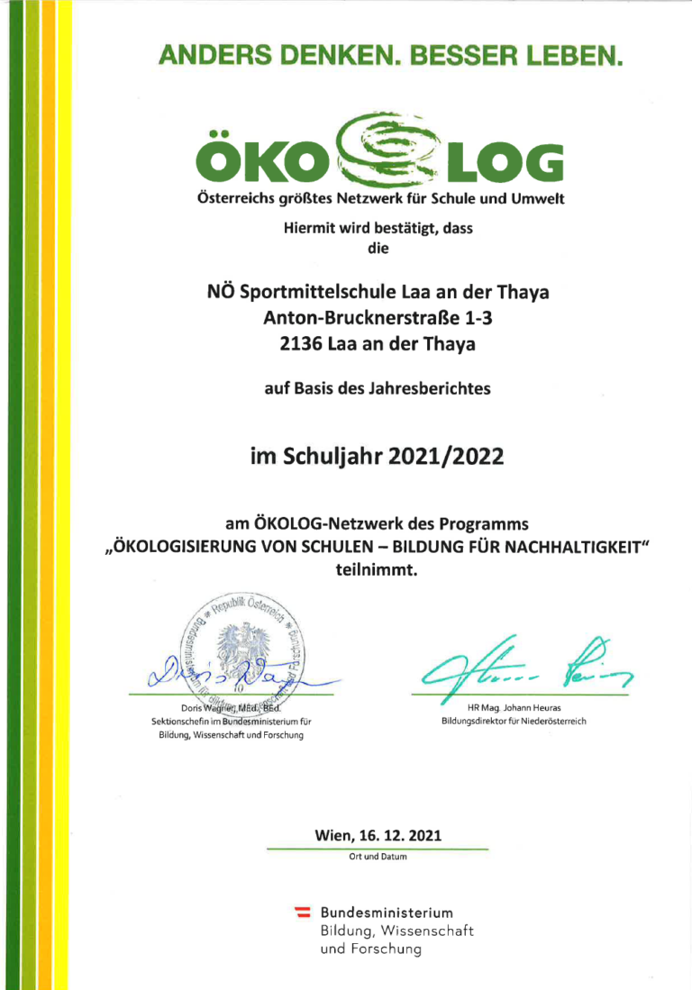 Im feierlichen Rahmen wurde unsere Schule am 03.06.2025 im Landhaus St. Pölten das Schulsportgütesiegel in Gold verliehen. Damit wird das herausragende Engagement im Bereich Bewegung und Sport gewürdigt.
